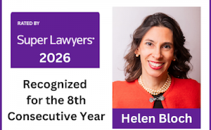 We are pleased to announce that Helen Bloch has been selected by Super Lawyers Magazine as a Super Lawyer for 2019 in the field of employment law. The Super Lawyers designation, conferred upon the most respected legal practitioners in the state, is based upon peer recognition and professional achievement. Only 5% of the total lawyers in each state are selected to receive this honor.  We are thrilled to be recognized as among the best lawyers in the area!